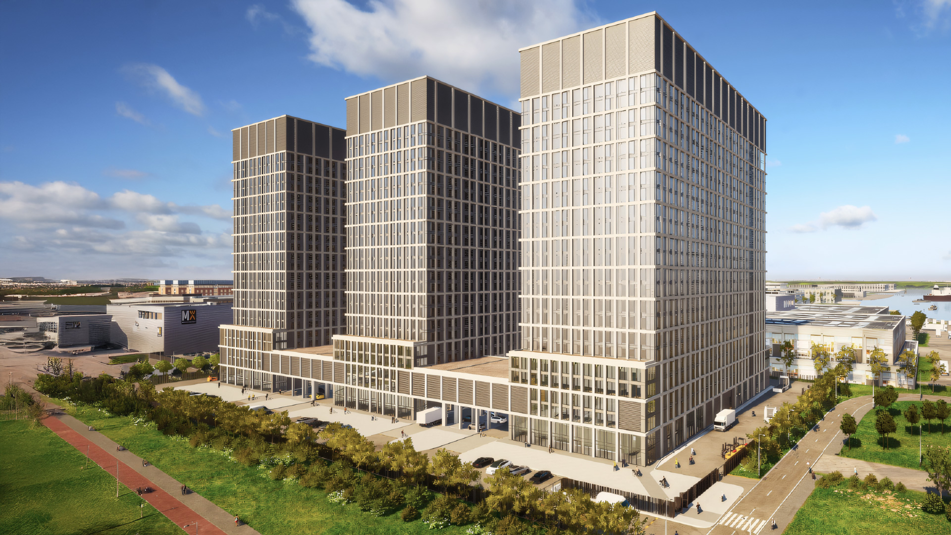 Pure Data Centres Group bouwt in Westpoort een datacenter van bijna 100.000 vierkante meter. Het Amerikaans IT-bedrijf verdeelt het complex aan de Plimsollweg in drie torens van 85 meter.